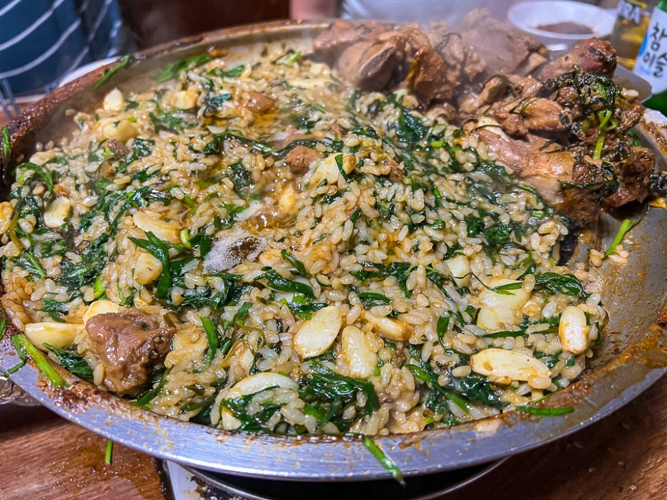 앉은 자리 뒷편에 부추가 한소쿠리 넘치게 담겨져 있었는데 그거 절반은 우리가 먹었다.